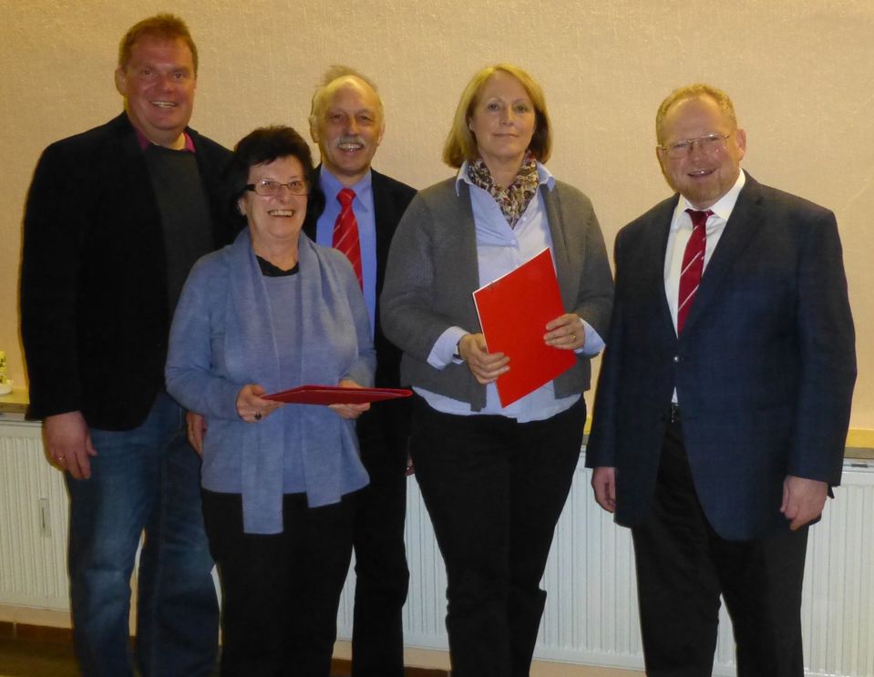 Auf dem Bild von links:1.Bürgermeister Matthias Döhla, Hannelore Putzer, Horst Börder, Christel Werner, MdL und Kreisvorsitzender Klaus Adelt.