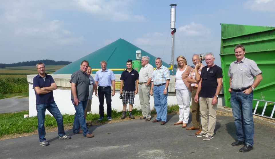 2.v.links: 1.BM Matthias Döhla, 5.v.li. Sebastian Völkel,1.v.re.Wolfgang DegelmannEine von OV-Vorsitzenden Horst Börder gut organisierte Besichtigungsfahrt führte zu drei verschiedenen EEG-Anlagen im Landkreis Hof.